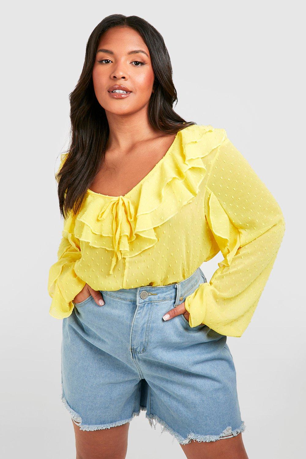 Yellow cheap ruffle blouse