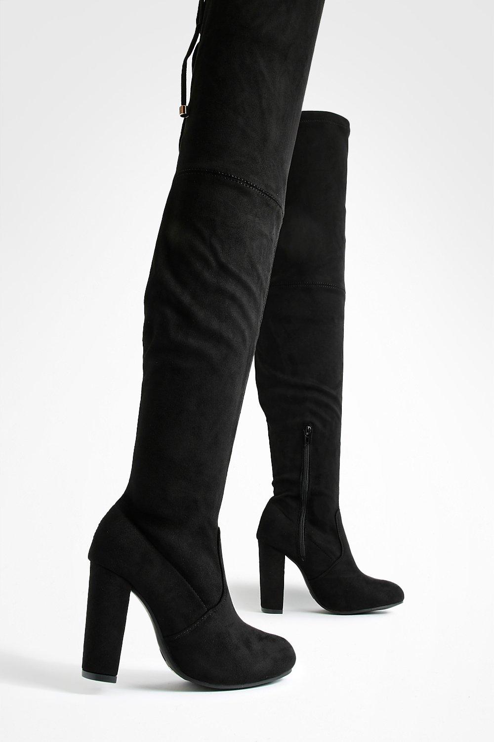 Product Item: Tall black boots with cheap heel