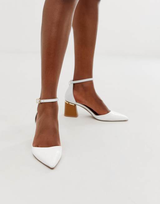 White cheap stacked heels