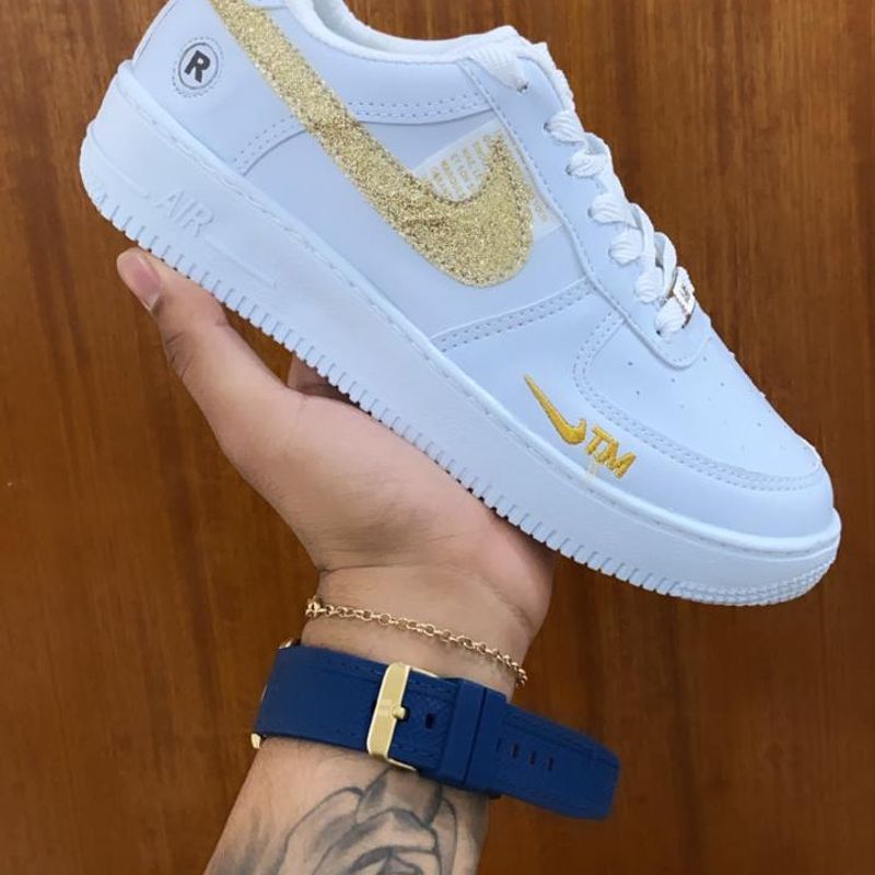 Product Item: Tenis nike feminino cheap branco com dourado