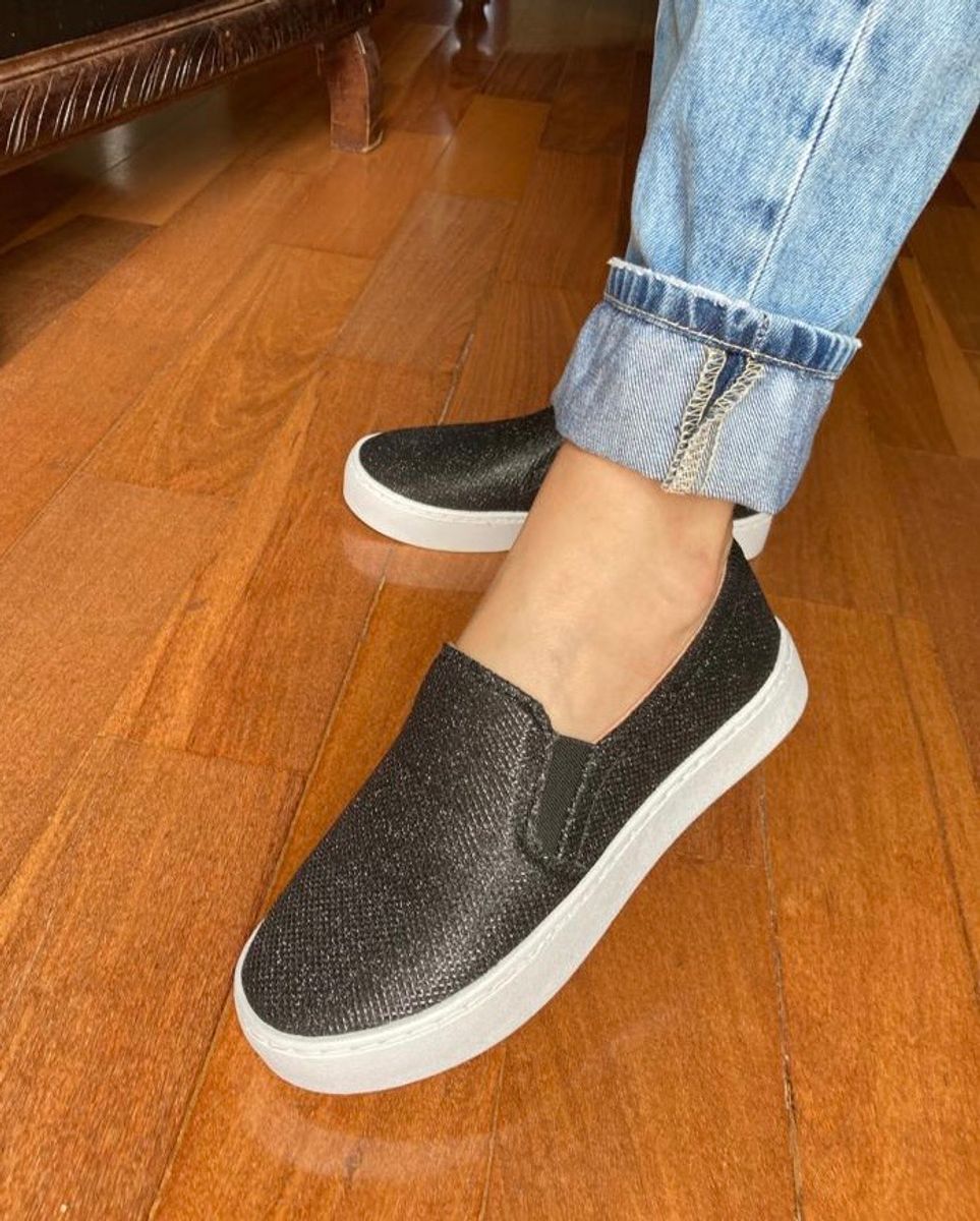 Slip on preto com cheap brilho
